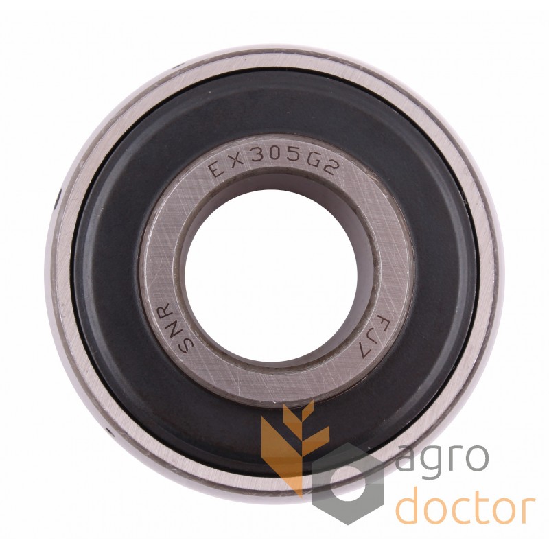 Закрепляемый шариковый подшипник EX305.G2 SNR, Франция. Запчасть верхнего шнека зерноуборочных комбайнов Джон Дир / John Deere agrodoctor. Каталожгные номера: AH129451 и AH168161. Размеры (dxDxT): 25x62x46.8мм.