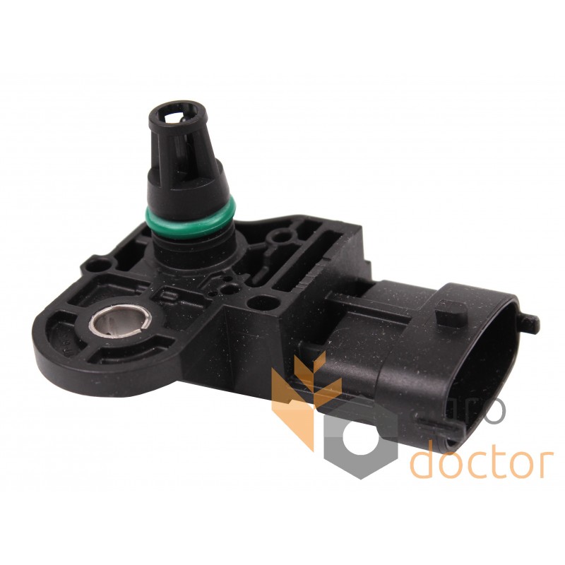 Датчик массового расхода воздуха, электронной системы управления двигателем тракторов Case-IH, New Holland. Длина - 60 мм., ширина - 48 мм., высота - 45 мм .. Каталожные номера: 504369148, 0281006028