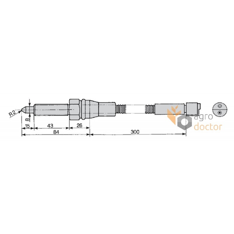 Деталь в виде електрического кабеля на одном конце которого подсоеденен датчик для измерения, а на втором разъем для соединения с указателем. Для крепления датчика выполнена резьба, а кабель защищен оболочкой.