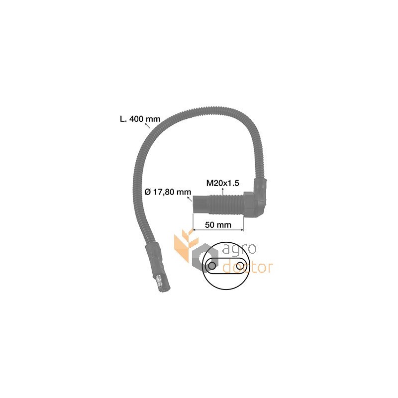 Датчик скорости оборотов вала трансм. трак-в Massey Ferguson (3050, 3090, 3115, 3125, 3610, 3680, 3690, 5425, 5435, 5480, 6110, 6190, 6235, 6290, 6445, 6480, 6612, 6616, 7614, 7618, 8110, 8180). Длина - 400 мм., резьба - М20х1.5. Каталож. номер 3583285M1