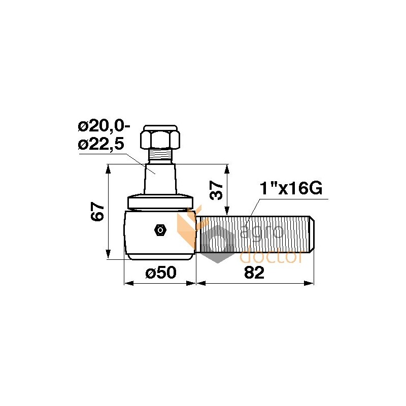Шаровая опора привода косы зерноуборочных комбайнов John Deere . Размеры в мм: Резьба - 1"x16G . Каталожные номера: 80134107, AH21345. Аналог.
