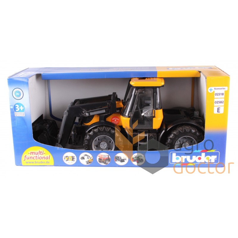 До мини-копии трактора JCB Fastrac 3220 можно установить дополнительную прицепную технику бренда Bruder.