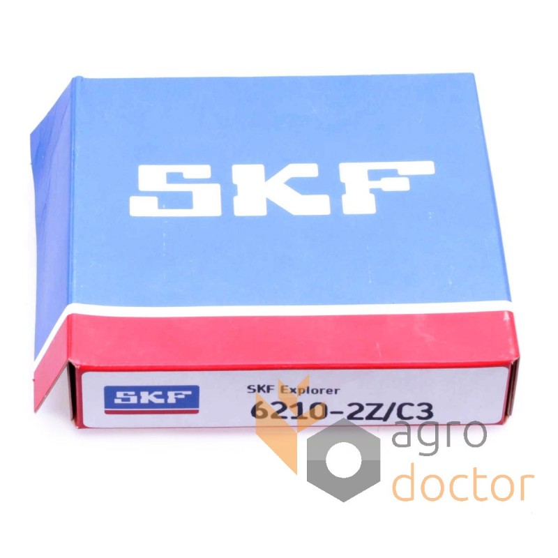 Подшипник шариковый 6210-2Z/C3 [SKF] привода узлов жаток, комбайнов, тракторов и пресс-подборщиков John Deere , Claas, Oros. Каталожные номера: JD10312233570, F20543, JD10312, 80012124, 1.327.593. Аналог.