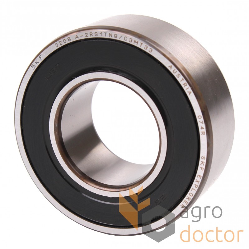 Двухрядный радиально-упорный шариковый подшипник 3208A 2RS1 TN9 /C3 [SKF] до комбайнів John Deere. Розміри: (dxDxB) - 40x80x30.2 мм. Каталогові номери: JD10473