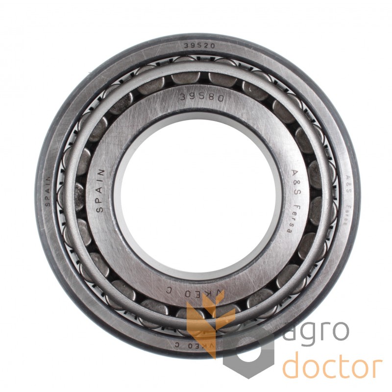 Подшипник 39580/39520 Fersa, Испания. Тип - радиальный однорядный конический роликовый. Разборный. Дюймовая серия. Размеры (dxDxT): 57.15x112.712x30.162 мм.
