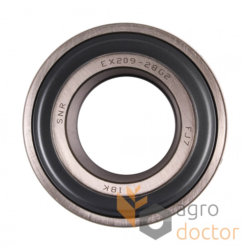 Закрепляемый подшипник EX209-28 G2 SNR, Франция. Сферическое наружное кольцо. Фиксация эксцентриковым закрепительным кольцом. Закрытый с двух сторон уплотнениями типа R. Дюймовая серия. Размеры (dxDxB): 44.45x85x56.6 мм.