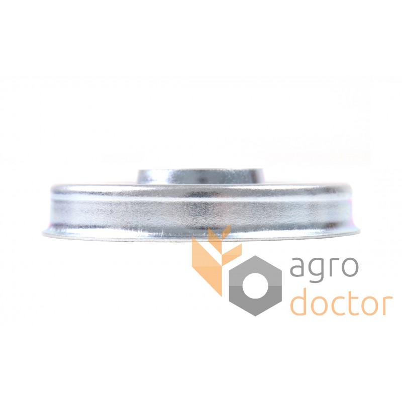 Металлическое изделие в виде колпачка соответствующих размеров с круглым отверстием в центральной части. Деталь оцинкованная с целью повышения прочности и износостойкости.