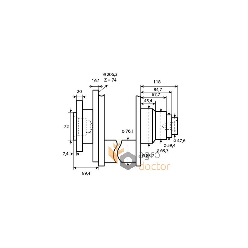 | Диаметр вала , Ds2 | mm | 63.7 |