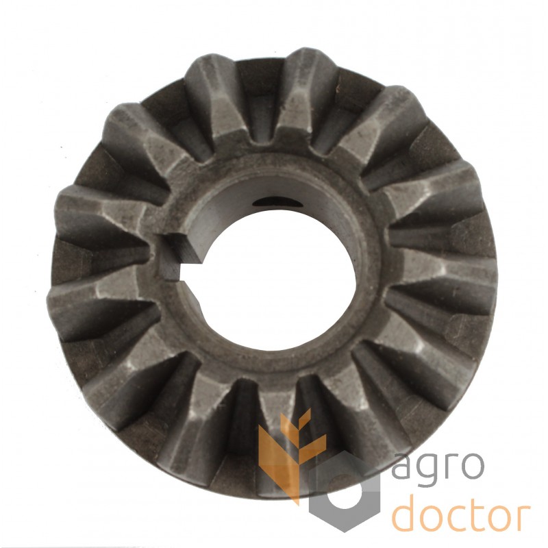 Коническая зубчатая шестерня в центральном отверстии которой изготовлены шлицы либо шпонковый паз для соединения с валом. Поверхность обработана термически для придания прочности и износостойкости.