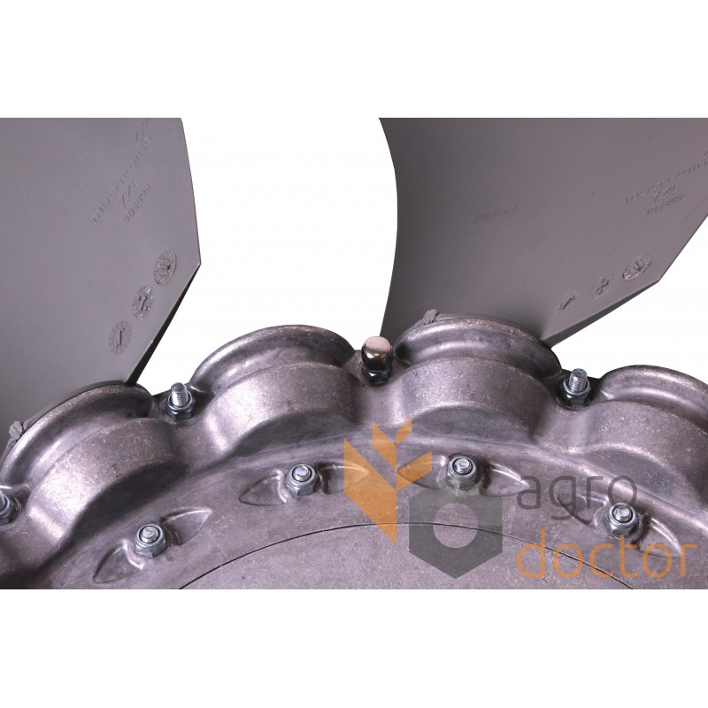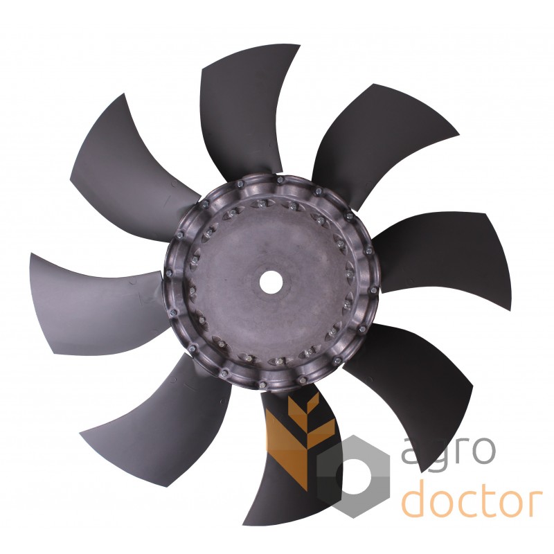 Крыльчатка вентилятора радиатора системы охлаждения двигателя для комбайнов Claas Lexion (570, 570 Montana, 580). Диаметр внутренний - 40 мм., диаметр внешний - 850, количество лопастей - 8. Каталожные номера: 798282.0, 0007982820, MWCZF2580318. Аналог