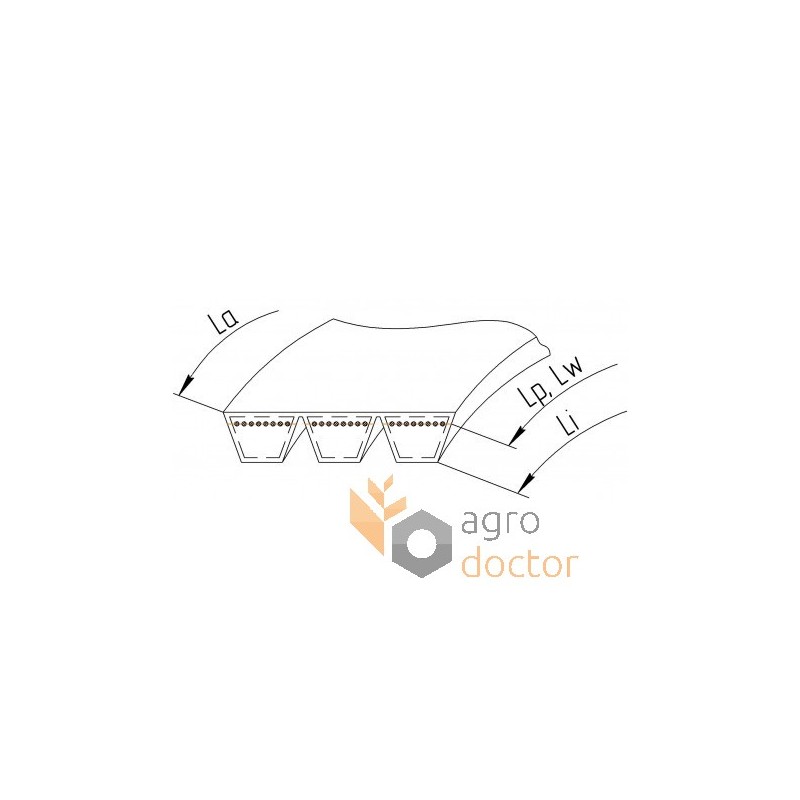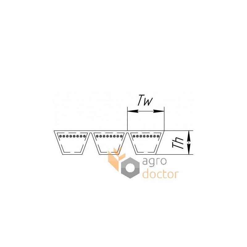 3 ремня(ей) классического профиля HB объединенных при помощи тонкой резино-тканевой пластины в единый многоручьевой ремень посредством общей вулканизации.
