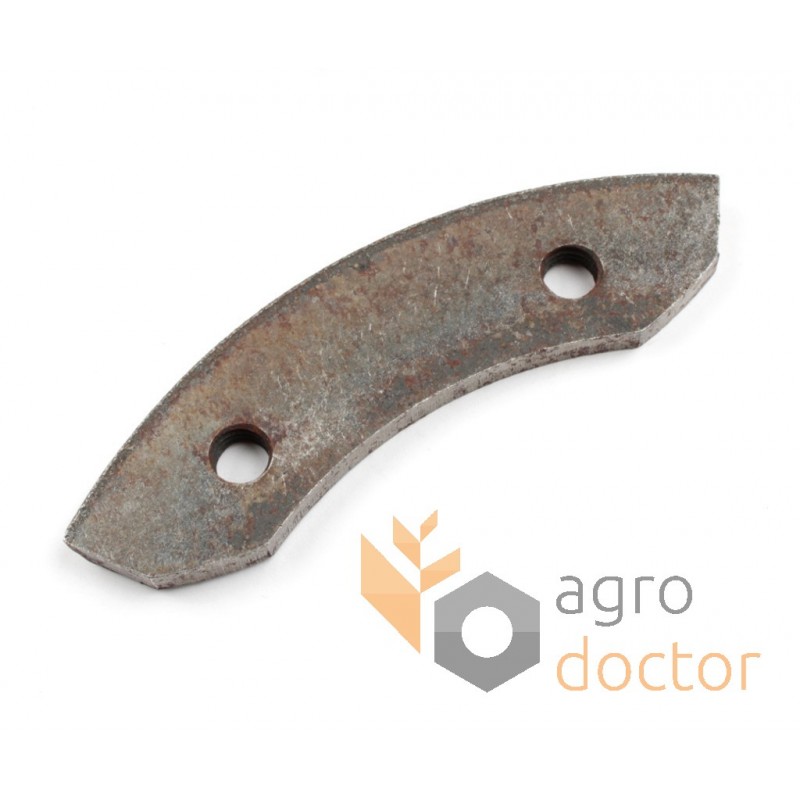 Изделие в виде пластины формы полумесяц с заостренной твердосплавной накладкой и отверстиями для крепления.