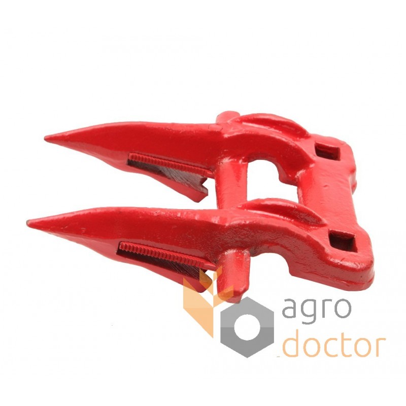 Кованая стальная деталь сложной пространственной формы в виде двузуба. У основания головки выполнены 2 отверстия для крепления к пальцевому брусу.