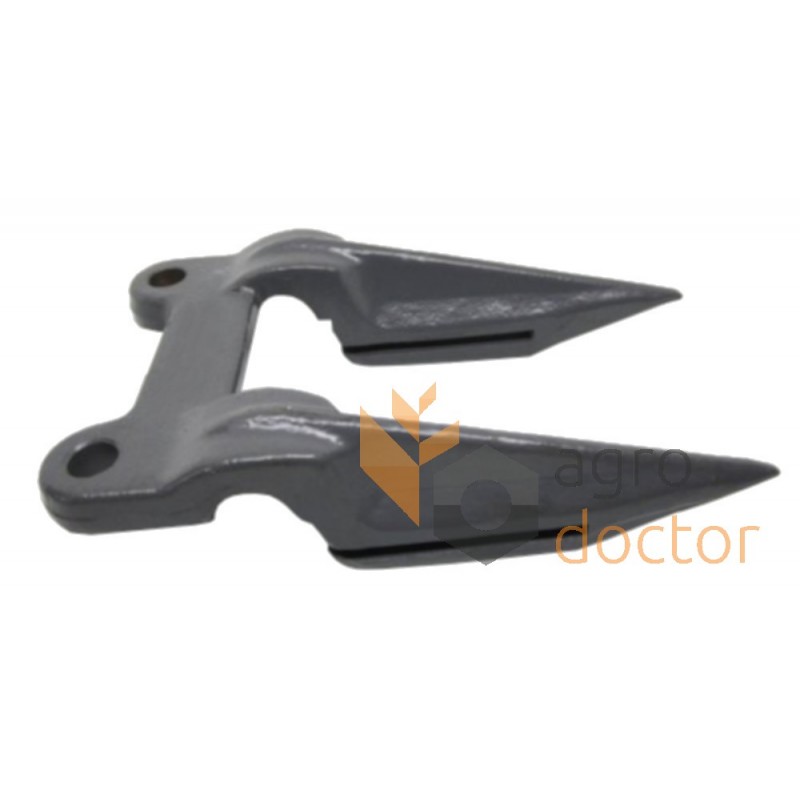 Кованное (иногда гнутое) стальное изделие сложной пространственной формы в виде двузуба с отверстиями у основания для крепления к пальцевому брусу и специальной прорезью в зубах, проходя через которую сегменты косы за счет пересечения острых кромок срезают стебли растений.