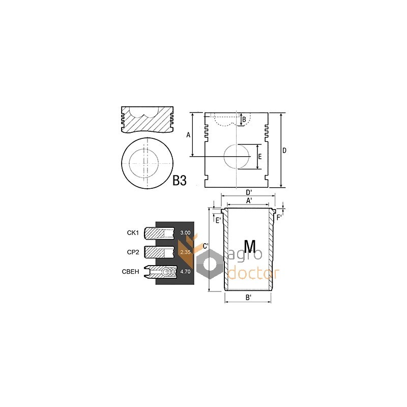 Поршнекомплект (поршень, гильза, кольца) двигателя агротехники Case-IH. Диаметр поршня - 100 мм. Количество колец - 3. Каталожные номера: 3218461R95