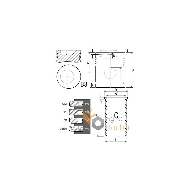 | Размер B поршня | mm | 20.25 |