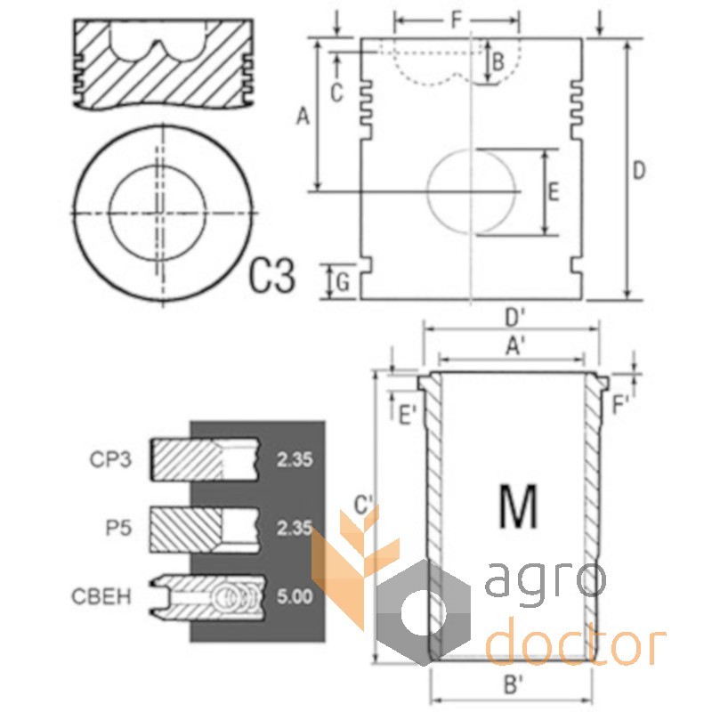 | Размер E поршня | mm | 30.17 |