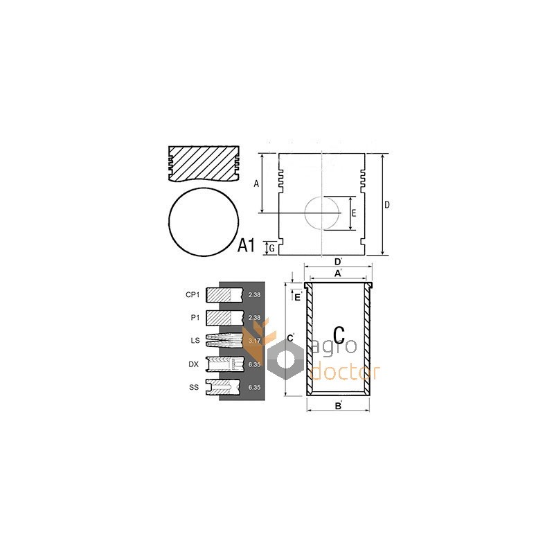 Поршнекомплект (поршень, гильза, кольца) двигателей Perkins агротехники Massey Ferguson. Диаметр поршня - 88.92 мм. Количество колец - 5. Каталожные номера: U5MK0056