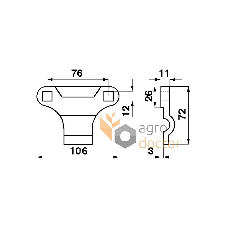 Прижим косы резального узла зерноуборочных комбайнов Massey Ferguson , New Holland. Размеры в мм: Длина - 72 Количество отверстий крепления - 2. Каталожные номера: 206195M1, 80309168, 80326896. Аналог.