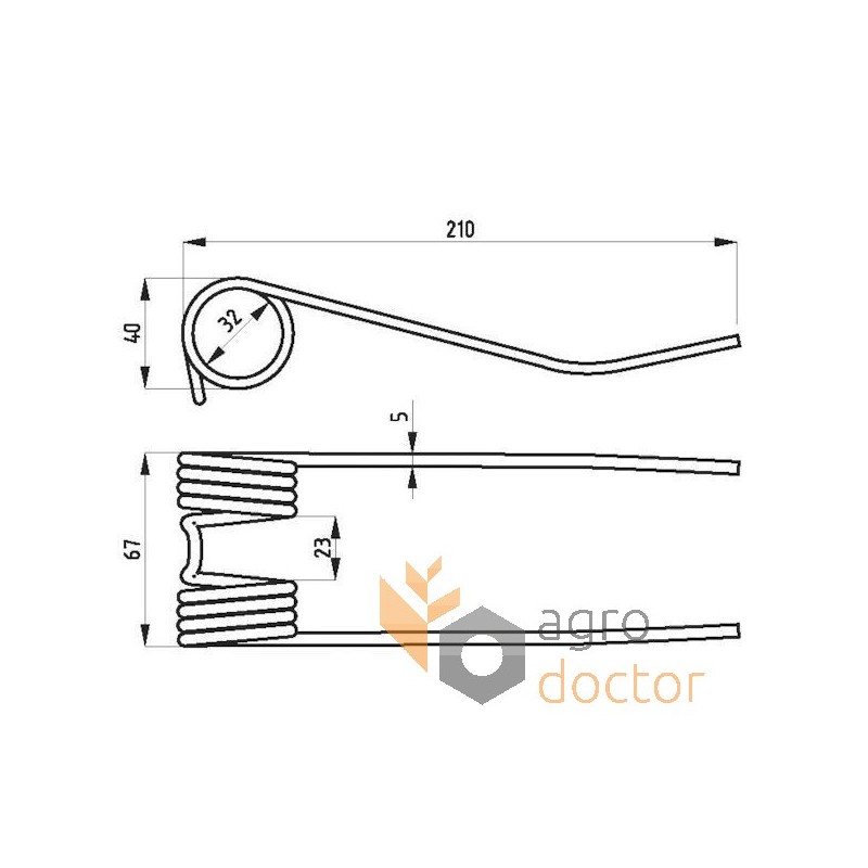 Пружинный палец пресс-подборщика Sipma Z224, 210х67х42мм