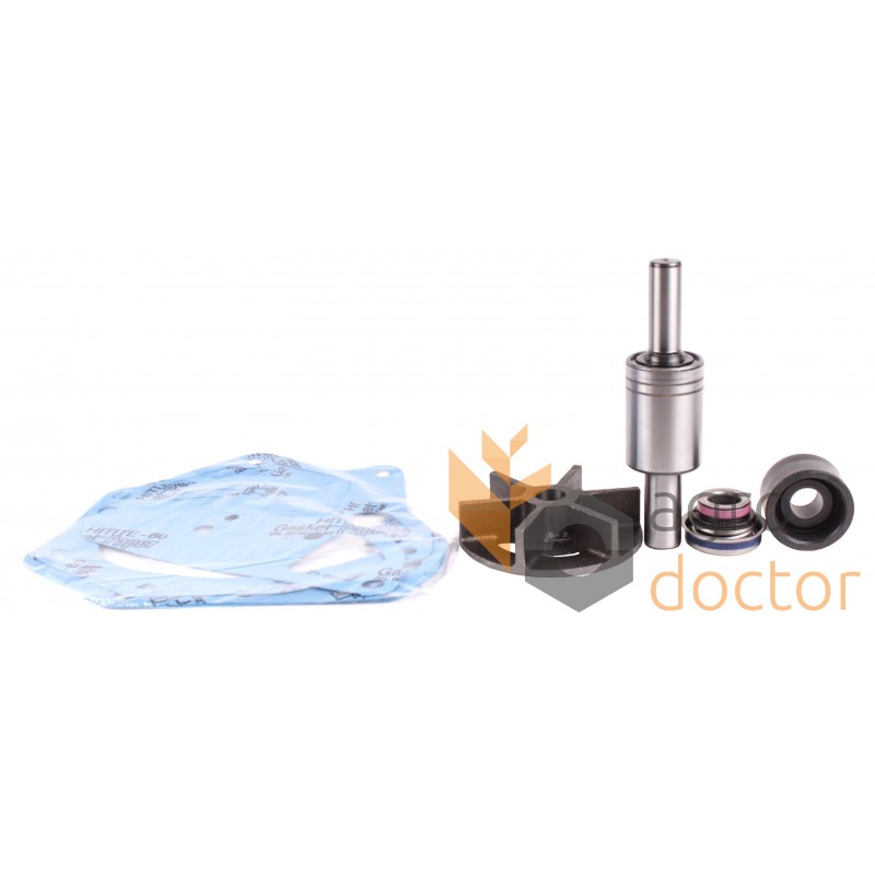 Набор деталей в составе которого есть валик, пружинный уплотнитель, манжета, крыльчатка, прокладки.