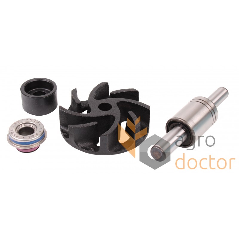 Набор деталей в составе которого есть валик, пружинный уплотнитель, манжета, крыльчатка, прокладки и уплотнительные кольца.