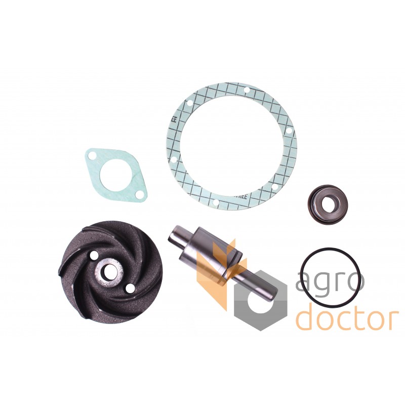 Набор деталей в составе которого есть валик, пружинный уплотнитель, уплотнительное кольцо, крыльчатка, прокладки.