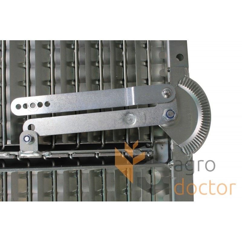 Жалюзийные решета содержат параллельно установленные в раме поворотные пластины, расположенные по обеим сторонам относительно оси. Поворот пластин осуществляется с помощью системы рычагов размещенных на раме решета. Деталь выполнена из п-образного стального профиля.