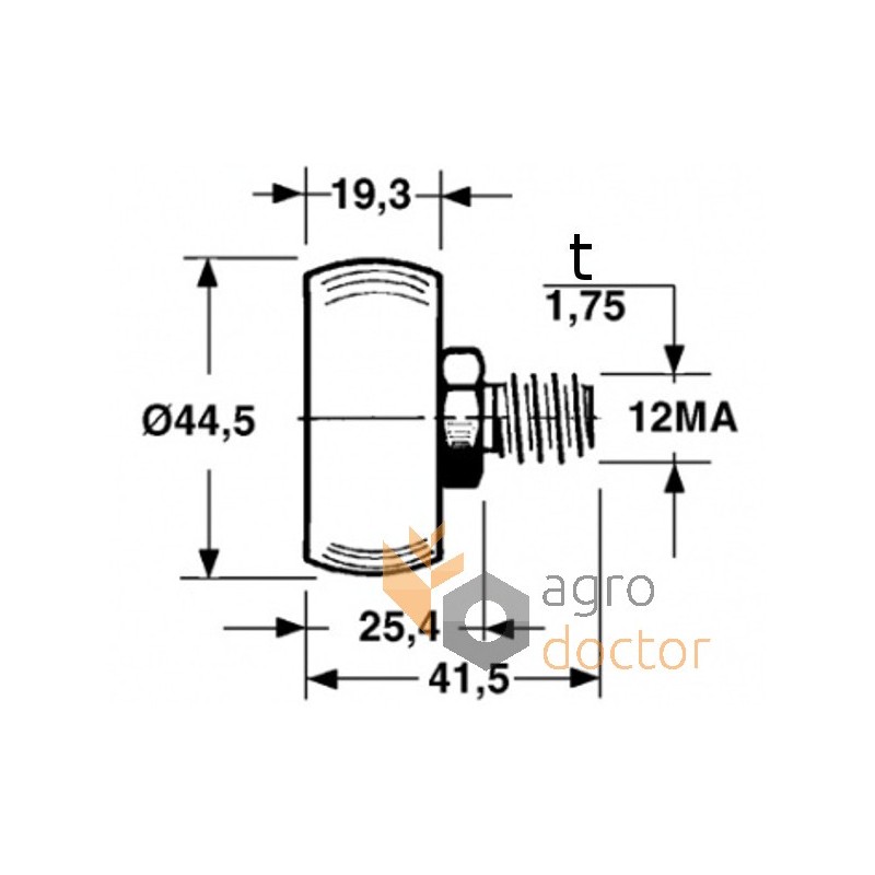 Ролик поршня прессовальной камеры пресс-подборщика New Holland 370. Размеры в мм: Длина - 41.5 Внешний диаметр - 44.5 Резьба - M12. Каталожные номера: 536569. Аналог.