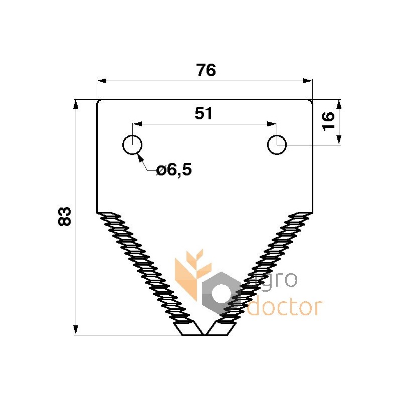 Сегмент ножа жатки к комбайнам Claas (модели Commandor, Dominator, Lexion, Medion, Mega). Размер 83х76 мм. ОЕМ номера 611208, 000611208.