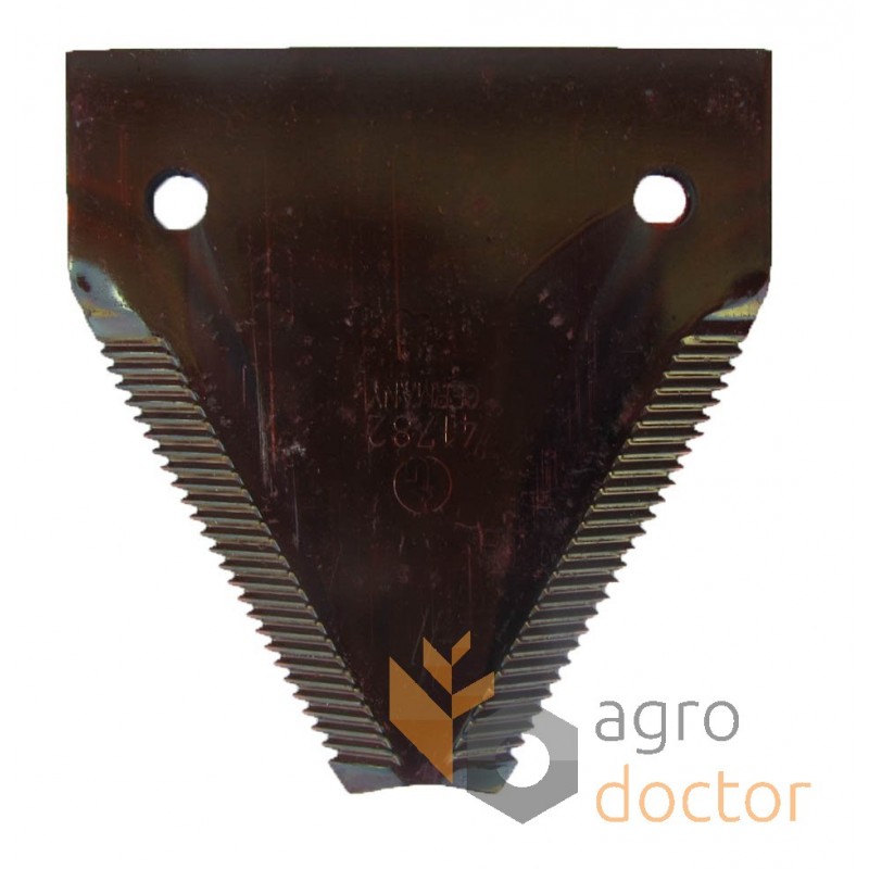 Сегмент ножа жатки к комбайнам John Deere (модели 1420, 1440, 1460, 1480, 1620, 1640, 1660, 1680), Dronningborg (моделі D8400, D8700, D8900, D9000), Dronningborg (модели D8400, D8700, D8900, D9000). Размер 82х76 мм. ОЕМ номер D44103700.