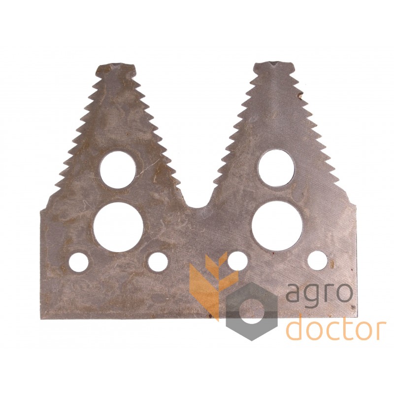Нож двойной косы жатки зерноуборочных комбайнов John Deere (618, 620, 630, 635, 640, 645, 730, 740. 745). Размеры в мм: Длина - 101 Ширина - 82 Диаметр отверстий крепления - 6.2 Толщина - 2.8. Каталожные номера: H163131. аналог