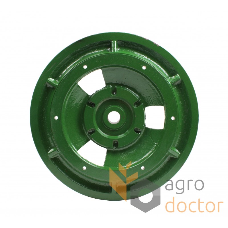 Шкив ременной вала наклонной камеры комбайнов John Deere (952, 955, 965, 965H, 968H). Размеры в мм: Внутренний диаметр - 30 Внешний диаметр - 410 Высота - 67. Каталожные номера: Z10887.