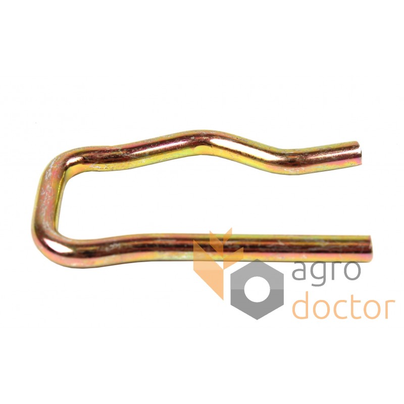 Шплинт крепления втулки жатки комбайна Dronningbord. Длина - 49 мм. ширина - 29 мм., диаметр проволоки - 4 мм.. Каталожные номера: D28281236