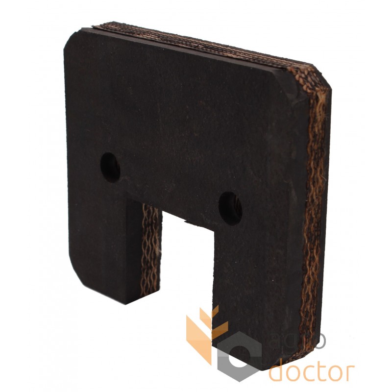 Резиновое изделие из транспортерной ленты в виде прямоугольной пластины с крепежными отверстиями и просечкой под звено элеваторной цепи.