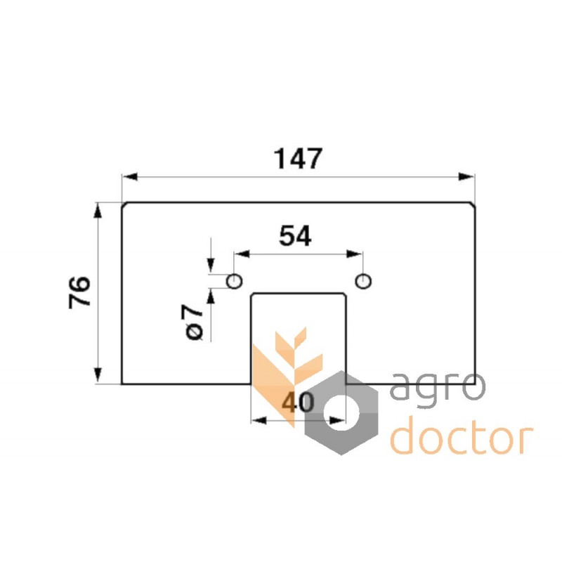 Скребок резиновый транспортера в виде прямоугольной детали для элеваторов зерноуборочных комбайнов John Deere 965, 965H, 968H, 975, 985, 1055, 1065, 1068H, 1072, 1075, 1085. Длина - 76 мм, ширина - 147 мм, толщина - 6 мм. ОЕМ номер Z38509.