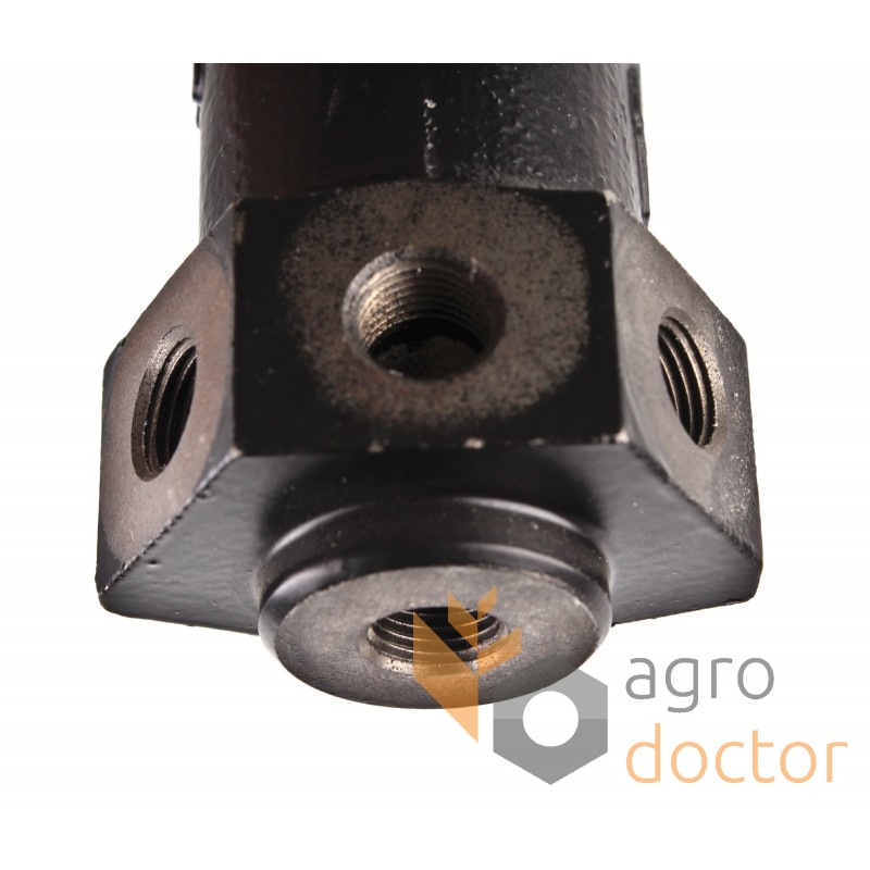 Сборочная единица из литого чугунного корпуса с отверстиями для крепления, штуцеров для подключения к гидравлической системы, поршней с манжетами, управляющих штоков с пыльниками.