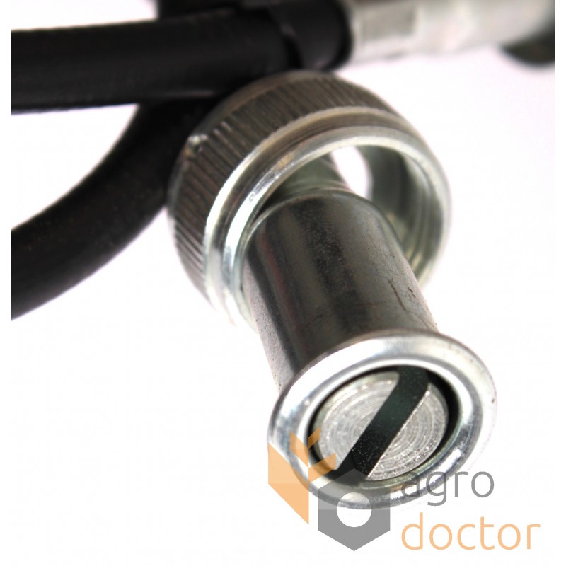 Тросик оборотов молотильного барабана в защитной оболочке (кожухе) черного цвета к зерноуборочным комбайнам Massey Ferguson (187, 487). Изделие в виде отрезка троса определенной длины (1640 мм). ОЕМ номер 1701473M1.