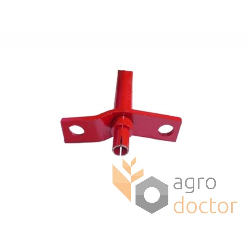 Сложная стальная деталь в виде сопряжения центральной части квадратного сечения с двумя цилиндрическими окончаниями для установки в подшипники. На квадрате выполнено 4 крепежных отверстия.