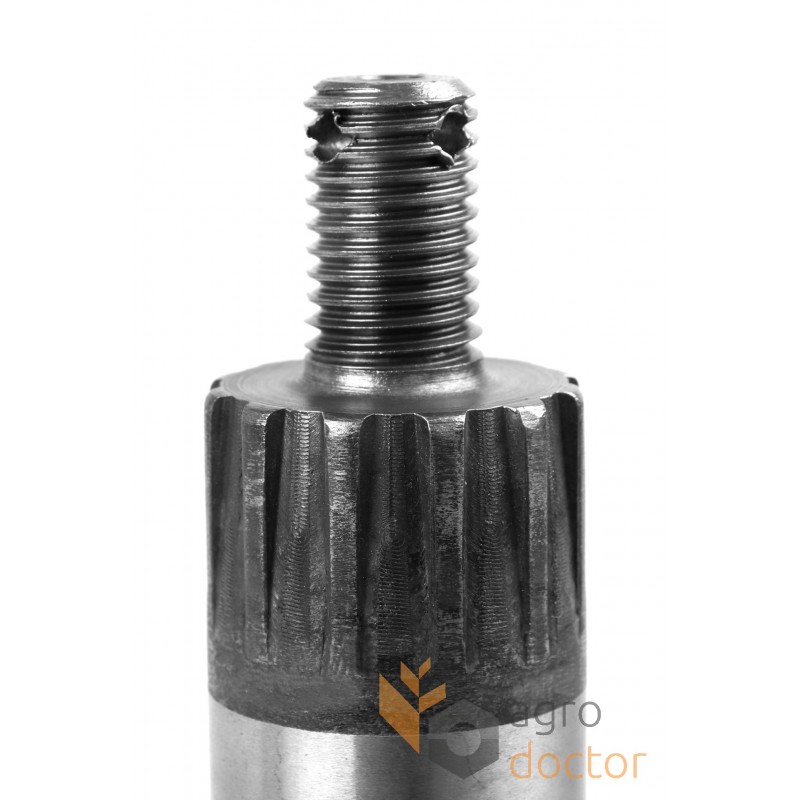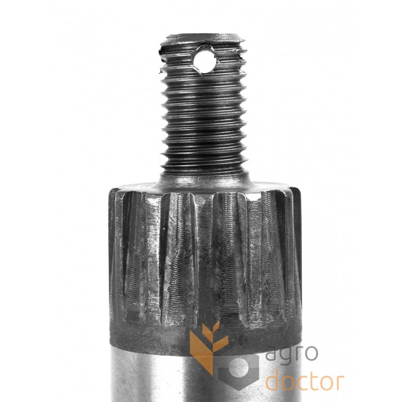 У основания вала выполнены шлицы для сочленения с балансиром косы. В плечах вилки проделаны отверстия для соединения с корпусом привода косы.