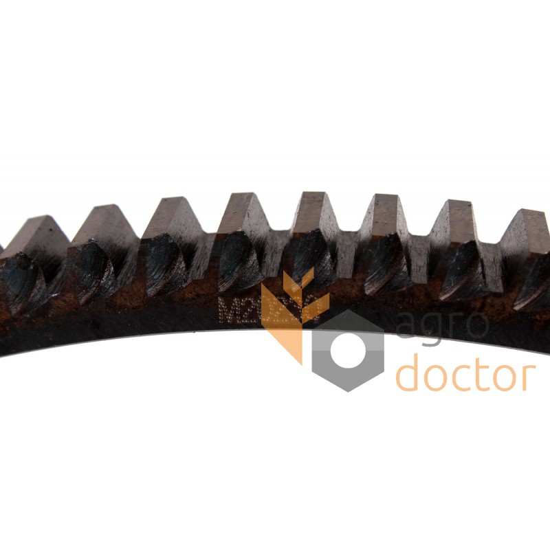 Зубчатый венец маховика на двигатель Perkins (1006.6, A6.354.4) комбайнов тракторов Massey Ferguson (396, 399, 4260, 4270, 4360, 699). Количество зубов - 118. Внутренний диаметр - 350 мм. Каталожные номера: 3819720M1, 31161148, 747694M1.