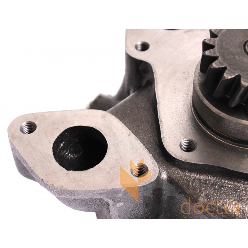 На валу закреплены крыльчатка, ступица и шестерня для привода вала. Для крепления насоса выполнены специальные отверстия.