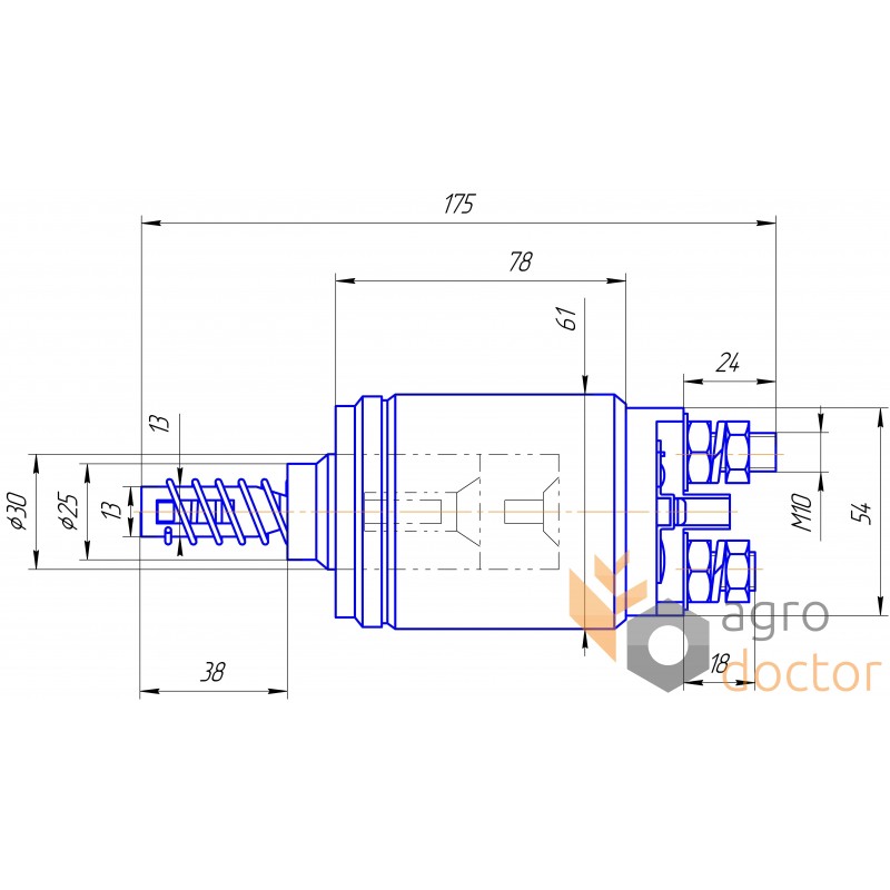 Втягивающее реле 130297 Cargo. Запчасть стартера двигателей к тракторам и комбайнам John Deere, Case-IH, Massey Ferguson. Длина - 175 мм. Каталожные номера: AL19192, zm-542 ZM, 1805670M1... и др. (см. Применение).