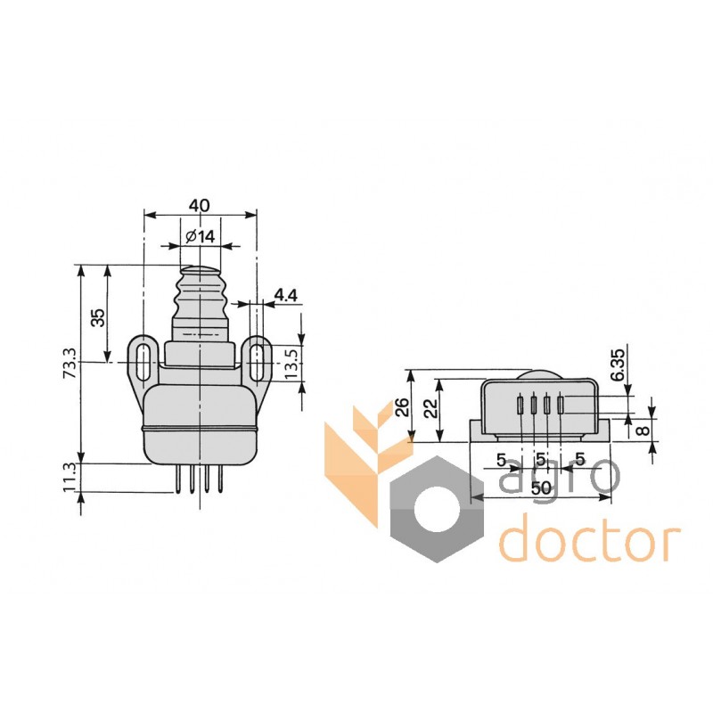 Выключатель стояночного тормоза агротехники: Massey Ferguson, Case IH, Deutz Fahr, Fiat, John Deere. Длина - 84.6 мм., ширина - 50 мм., высота - 26 мм.. Каталожные номера: 1511700001, 15.117.000, 3532018M1, 116256A1, ER030078