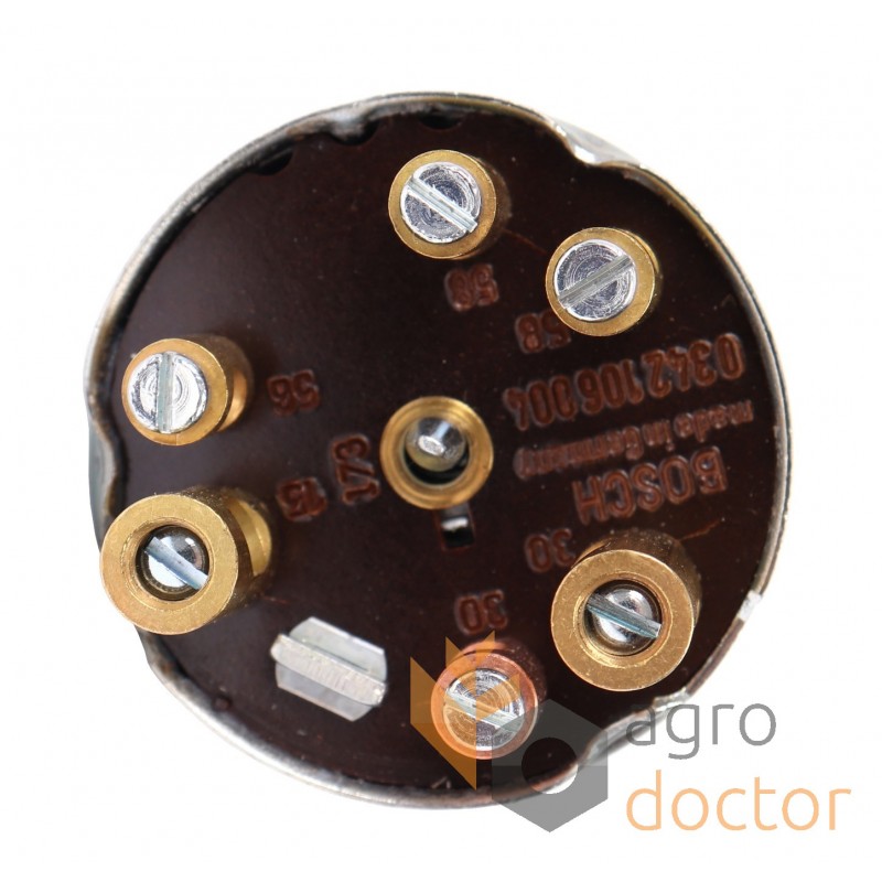 Замок зажигания дизельных двигателей комбайнов John Deere. Длина - 72 мм., диаметр внешний - 48 мм.. Каталожные номера: AZ21092, 0342106004