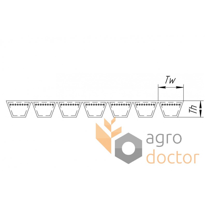 ремня(ей) классического профиля HB объединенных при помощи тонкой резино-тканевой пластины в единый многоручьевой ремень посредством общей вулканизации.