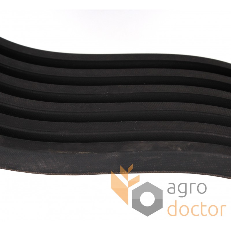6 ремня(ей) классического профиля HB объединенных при помощи тонкой резино-тканевой пластины в единый многоручьевой ремень посредством общей вулканизации.