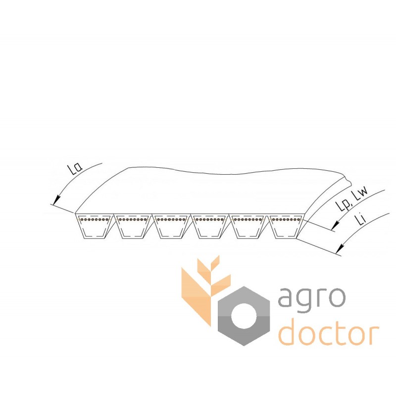 5 ремня(ей) классического профиля HB объединенных при помощи тонкой резино-тканевой пластины в единый многоручьевой ремень посредством общей вулканизации.