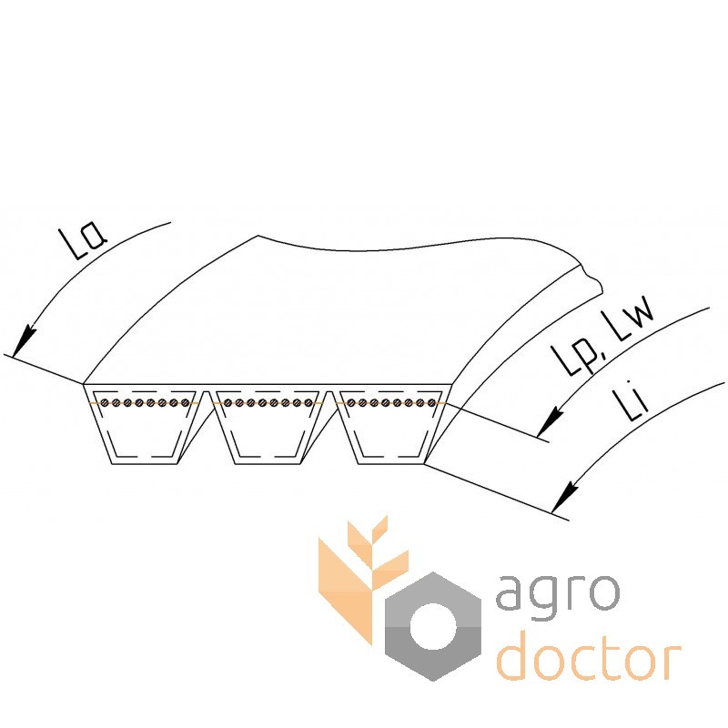 Приводной многоклиновой ремень 3HB143 к зерноуборочным комбайнам: Deutz-Fahr (M1000, M1102, M1200, M1202, M2480, M2580, M2680 и M2780) , Dronningborg, Massey Ferguson (30, 31, 32, 660 и 670 Challenger), New Holland (серии CS, CSX, TC)