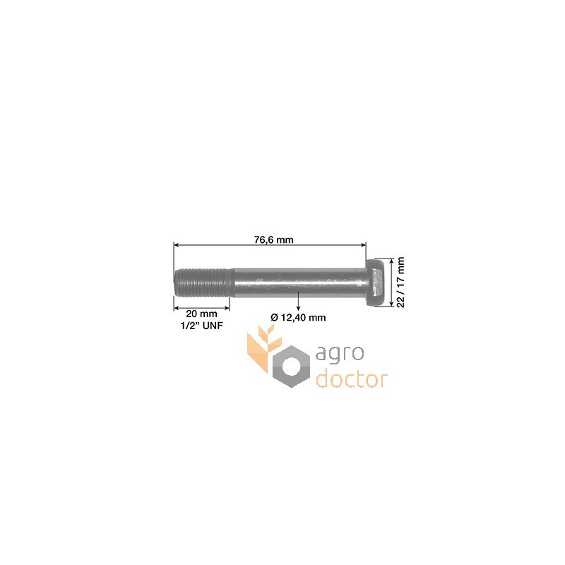 Болт шатуна двигателей Perkins для агротехники (Claas, Landini, Massey Ferguson). Длина - 76.6 мм., диаметр - 12.4 мм., резьба 1/2". Каталожные номера: 32762145, 4222485M1. . Аналог.